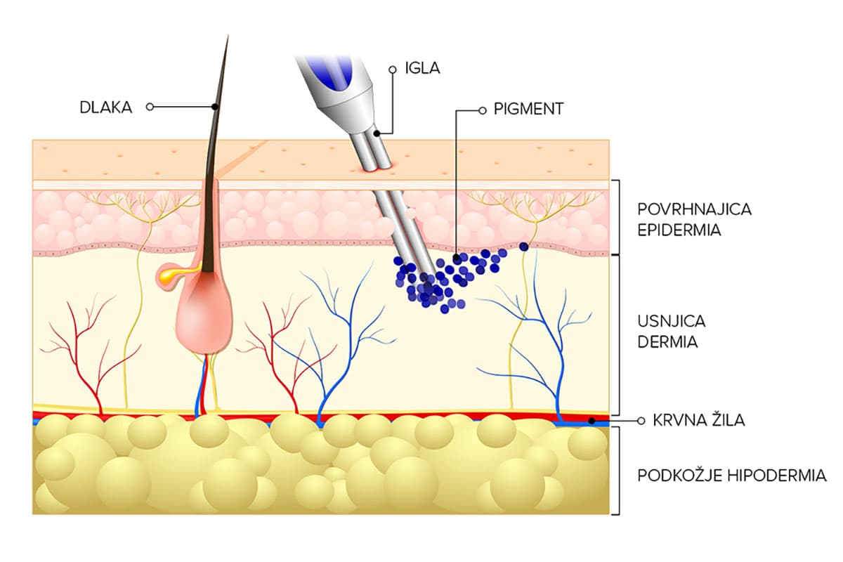 Prije prvog nanošenja mazila na svježu tetovažu, nježno je isperi mlakom vodom (bez upotrebe sapuna). Pusti da se osuši na zraku ili je nježno obriši papirnatim ručnikom. S čistim rukama! nanesi tanak sloj Tattoo Care mazila. Budući da je tekstura mazila gušća od kreme, pokušaj ga nanositi tako da prstom zahvatiš mazilo i tapkanjem naneseš na tetovažu (slika ispod). Pričekaj nekoliko trenutaka da se mazilo lagano zagrije, zatim ga nježno razmaži bez prekomjernog povlačenja. Mazilo možeš nanijeti i samo tapkanjem, bez razmazivanja. Ovaj postupak ponovi najmanje 3 puta dnevno dok se tvoja tetovaža u potpunosti ne obnovi (2–4 tjedna).