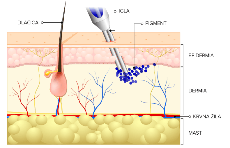 Kako biste na odgovarajući način zaštitili vašu kožu i tetovažu, važno je razumjeti proces tetoviranja. Tattoo je posebna tinta koja se iglicama ubrizgava u dublji sloj kože. Igle probadaju kožu od 50 do 3000 puta u minuti ubrizgavajući tintu. Ovim procesom se oštećuje koža, posebice onaj dublji sloj gdje se najviše oštećuje, što kasnije zahtijeva odgovarajuću zaštitu i njegu. Zbog toga je vrlo važno koristiti proizvode koji ne štite samo vanjski sloj kože, već mogu prodrijeti dublje i zaštititi unutarnji sloj kože.