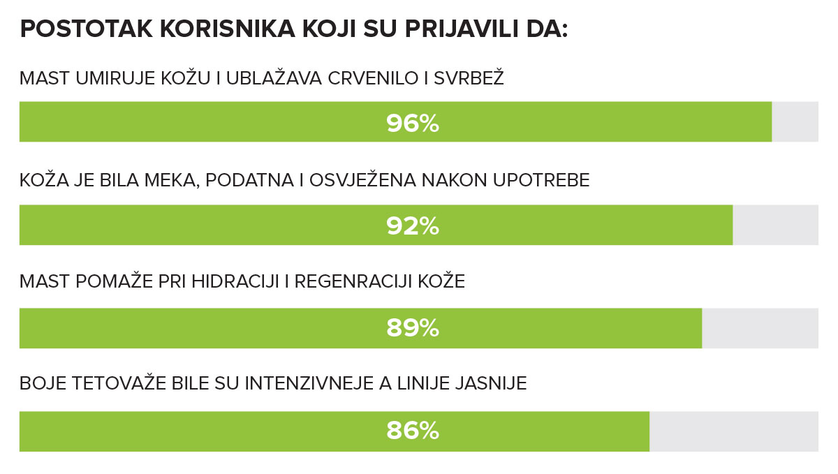• Potpomaže oporavak kože nakon tetoviranja