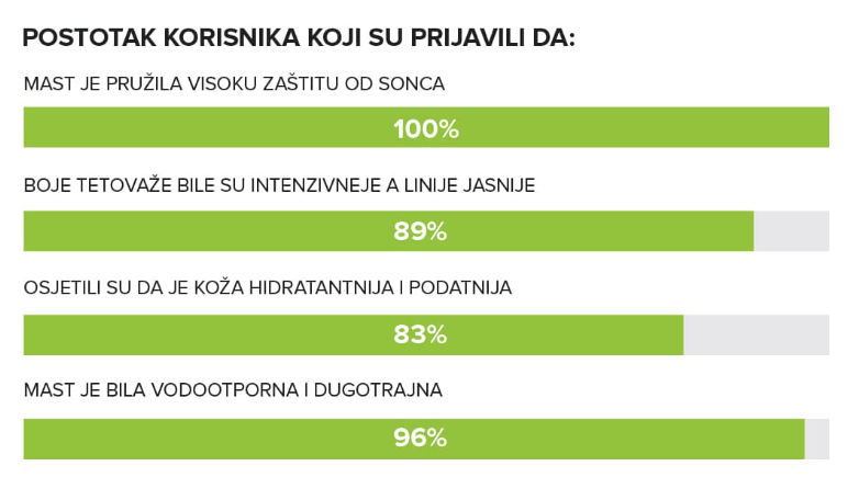 Pozitivni učinci korištenja masti su da hidratizira, štiti i hrani dublji dio kože. Na taj način će boje tetovaže postati postojanije i živahnije, a ujedno će biti zaštićene od blijeđenja.