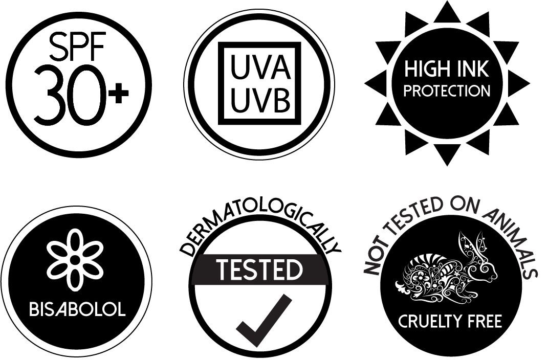 Mast za zaštitu tetovaža od sunca sa 30+ SPF i zaštitom širokog spektra od UVA/UVB sunčevih zraka. Napravljena je od kvalitetnih prirodnih sastojaka. Osim zaštite od sunca, mast će hidratizirati, nahraniti kožu i pomoći da boje vaših tetovaža budu življe i blistavije. Neka se cijela plaža divi ljepoti vaše tetovaže.